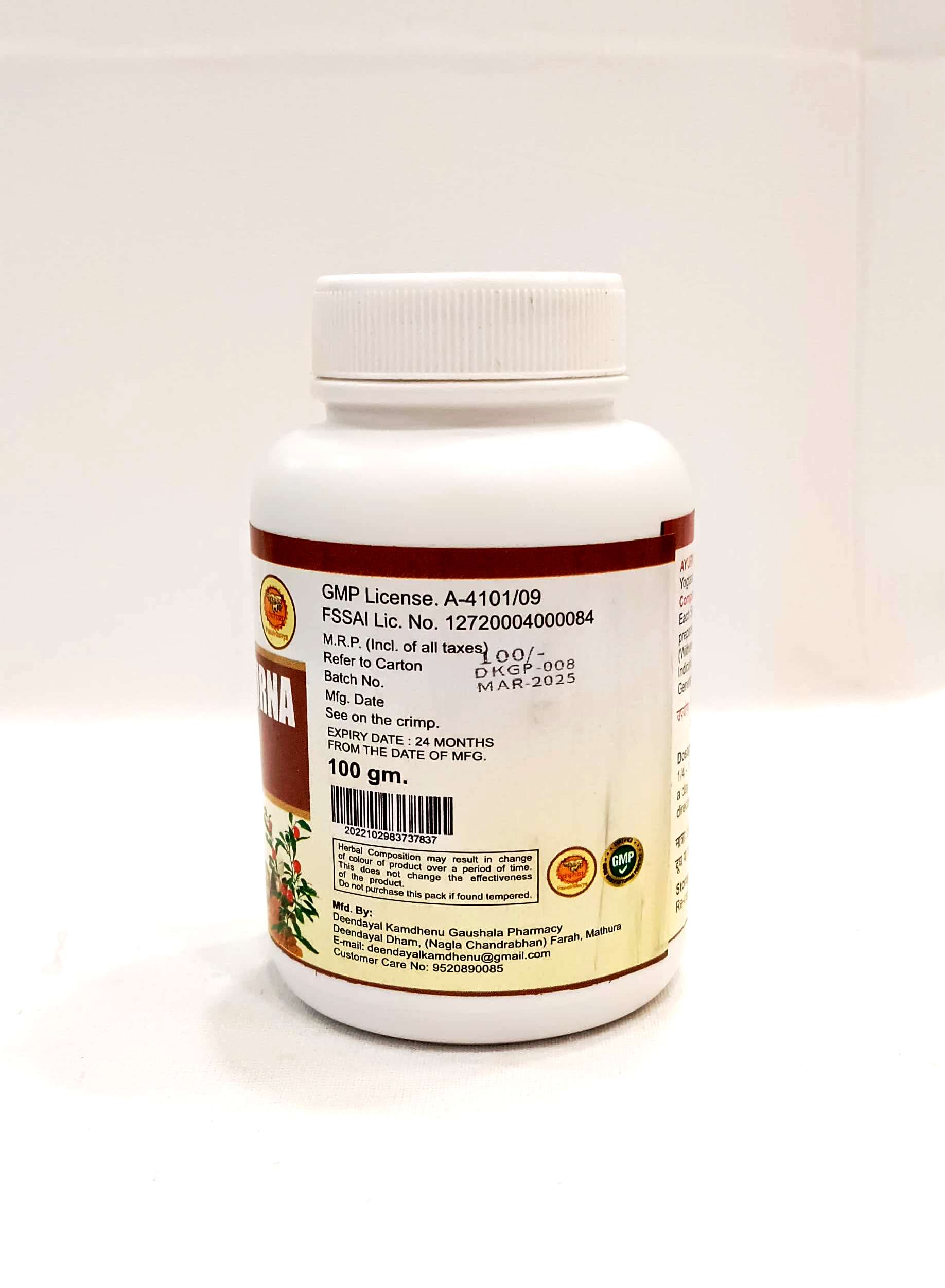 पंचगव्य अश्वगंधा चूर्ण एक आयुर्वेदिक चूर्ण है जो उल्लेखनीय मात्रा में शक्ति, ऊर्जा और सहनशक्ति में सुधार करने में मदद करता है और तनाव और कमजोरी को कम करता है। अश्वगंधा कोर्टिसोल के स्तर को संतुलित करने में मदद करता है और मांसपेशियों को बढ़ाने के लिए शरीर को एनाबॉलिक स्थिति में बनाए रखता है। यह तेजी से मांसपेशियों की रिकवरी में भी मदद करता है। यह प्रतिरक्षा में सुधार करने में सहायक है और न्यूरोप्रोटेक्टिव क्रिया प्रदर्शित करता है। पंचगव्य अश्वगंधा चूर्ण संज्ञानात्मक कार्यों को बढ़ाने में भी मदद कर सकता है।